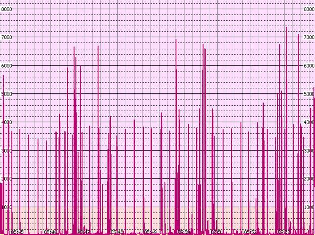 Smart Meters are adaptive and automatically checks itself (self monitoring). We have performed 24 hour monitoring and have seen the following rates in Southern California. Self monitoring burst occur on average between 2 and 5 times a minute and have smaller signal amplitude than when transmitting data. Data transmission bursts occur 2- 3 times a day, the time varies depending on the programming by the utility company and have significantly larger amplitude than the self monitoring bursts.